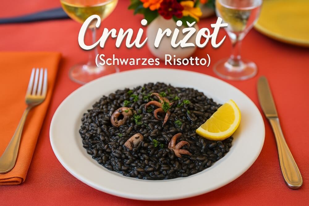 Crni rižot ist eines der ikonischsten Gerichte der dalmatinischen Küstenregion Kroatiens. Es wird überwiegend entlang der Adria serviert – von Istrien bis Dubrovnik. Das Geheimnis seines charakteristischen schwarzen Farbtons liegt in der Sepia des Tintenfischs, die zugleich ein intensives, maritimes Aroma ins Risotto bringt.