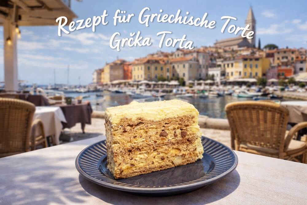 Diese traditionelle griechische Torte besteht aus luftigen Walnussböden und einer reichhaltigen gelben Creme mit Nüssen, Schokolade und kandiertem Obst. Perfekt für Feiertage, Geburtstage oder als festliche Desserttorte.