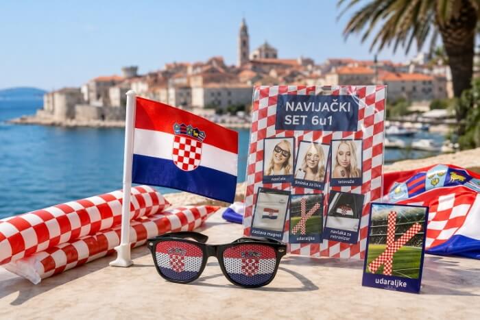 Wer Kroatien bei Fußball, Handball oder anderen Turnieren stilvoll unterstützen möchte, findet in unserem Shop eine Auswahl passender Fanprodukte. Besonders beliebt sind Fan-Sets, Autofahnen, Spiegelüberzüge, Magnete, Brillen und weitere Accessoires rund um Hrvatska.